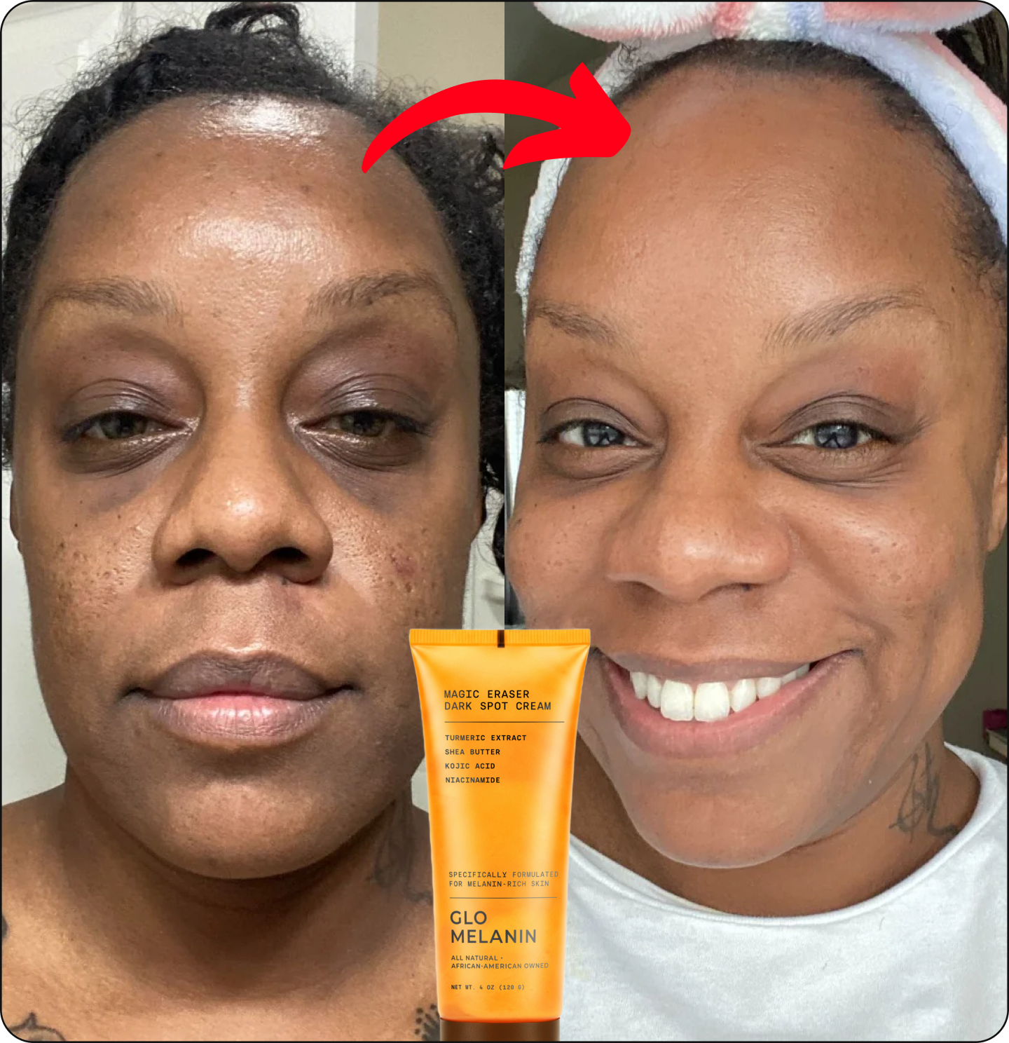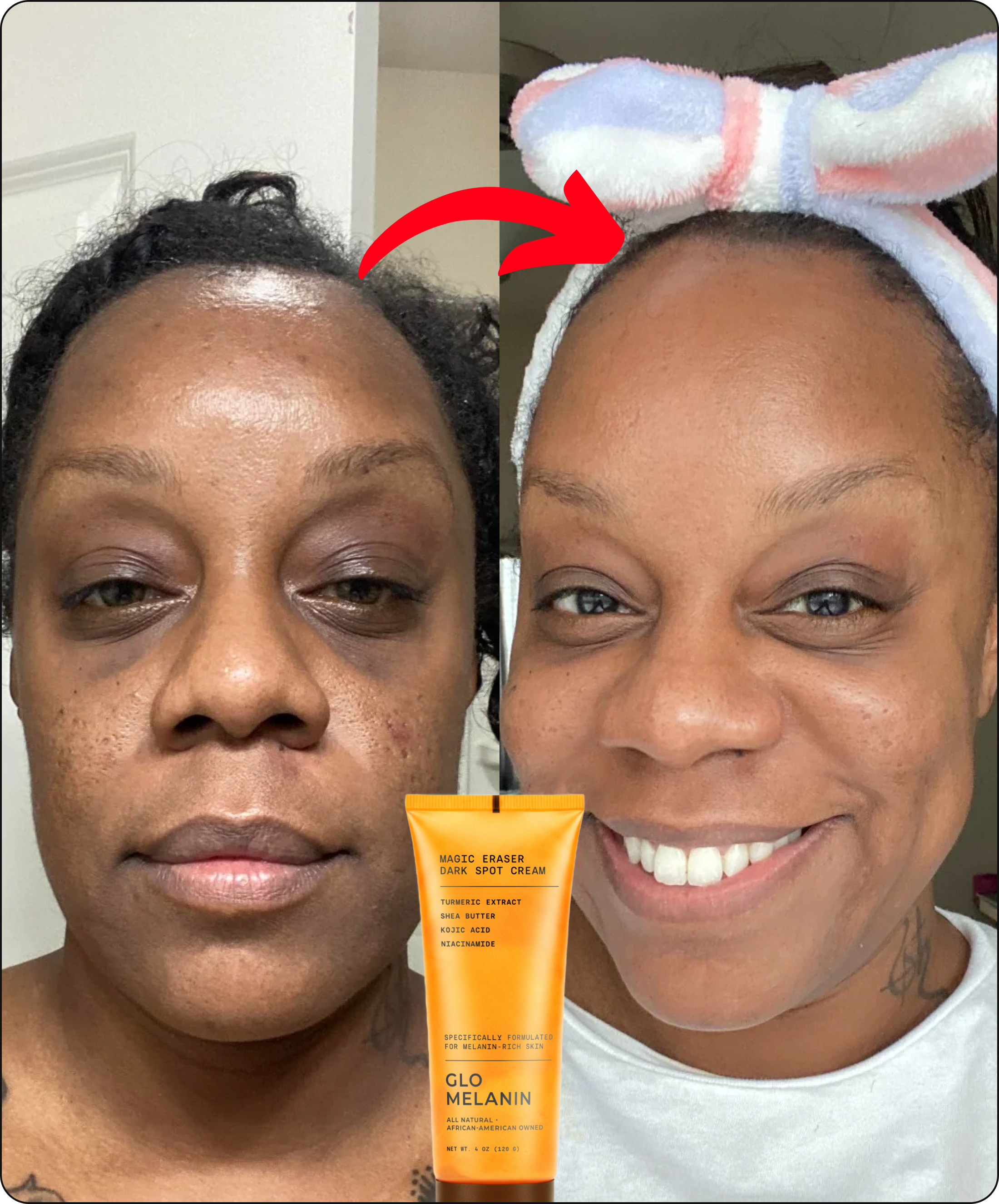 And the rate at which melanin-rich skin develops dark spots is FASTER than other skin types, even when you take care of your skin—robbing you of your confidence and making you avoid certain clothes, photos, and even intimate situations.